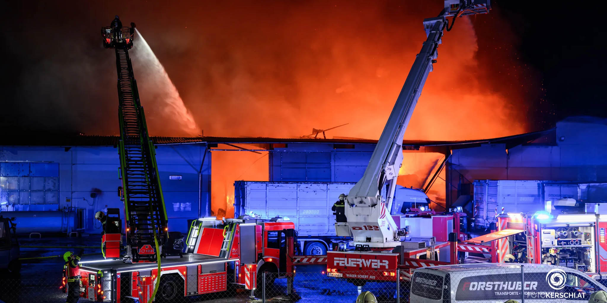 Kurz nach Mitternacht wurden wir zu einem Großbrand in einem Recyclingbetrieb im Grenzbereich Linz–Traun alarmiert. Schon auf der Anfahrt war klar: