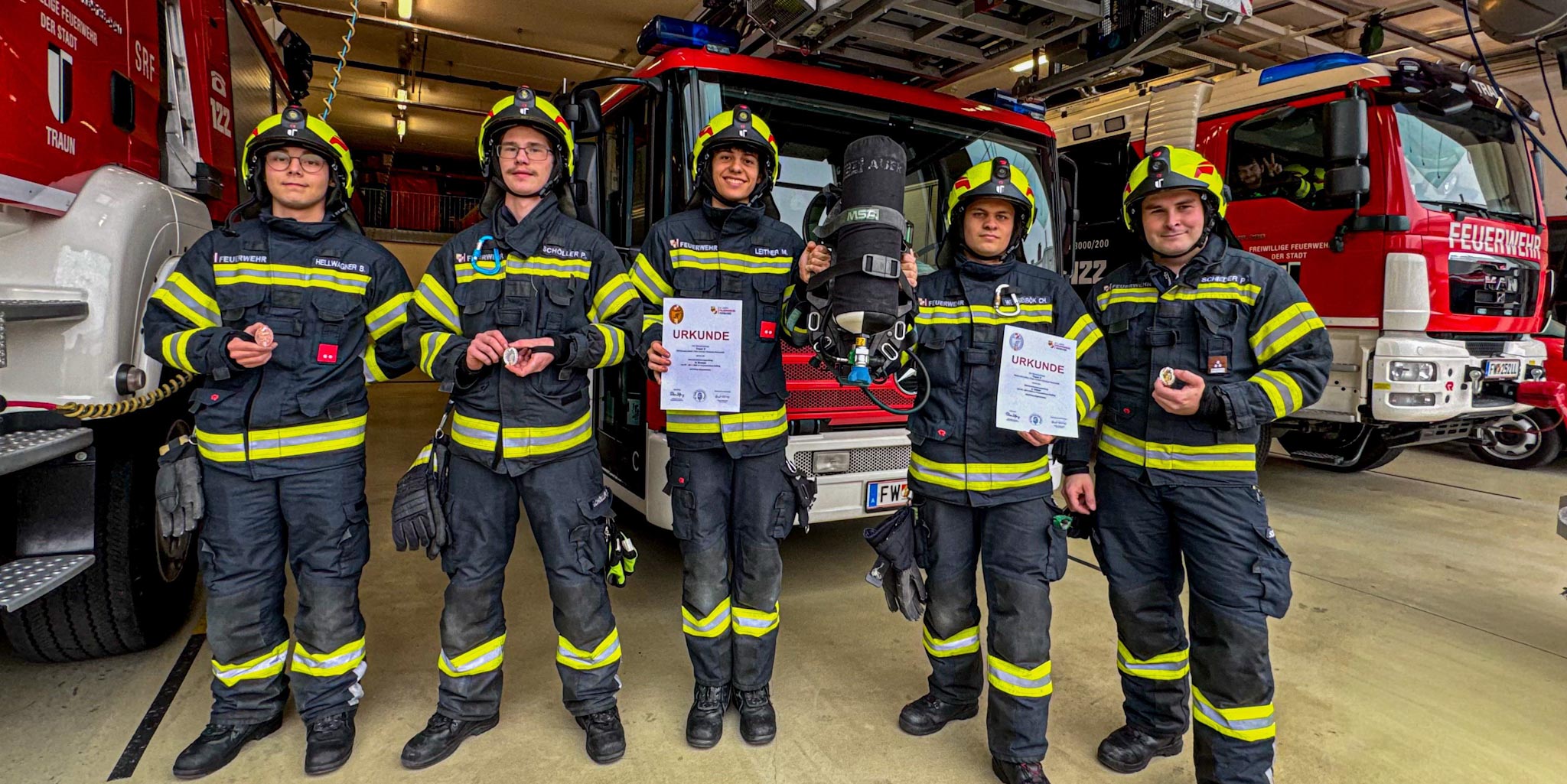 14 Feuerwehrmitglieder der Stadt Traun – von jung bis erfahren – sind heute beim Trauner